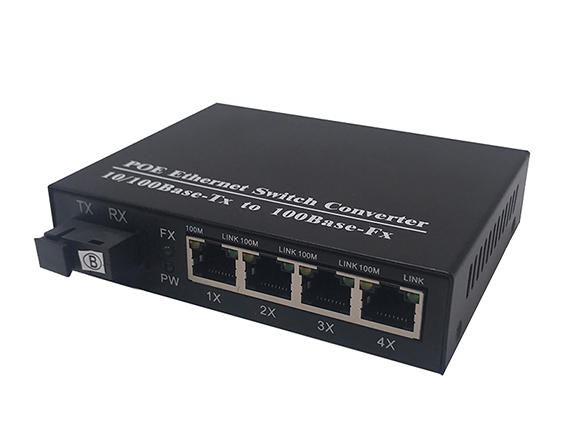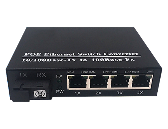 百兆1光4电POE交换机, RJ45口支持POE输出,国际POE标准,可以自动检测符合IEEE 802.3af/at标准的受电设备并为其供电,使用该设备可以方便的无线访问点(AP)和IPC监控摄像机等POE网络设备,并提供光口上行接口,实现远距离数据上传应用。